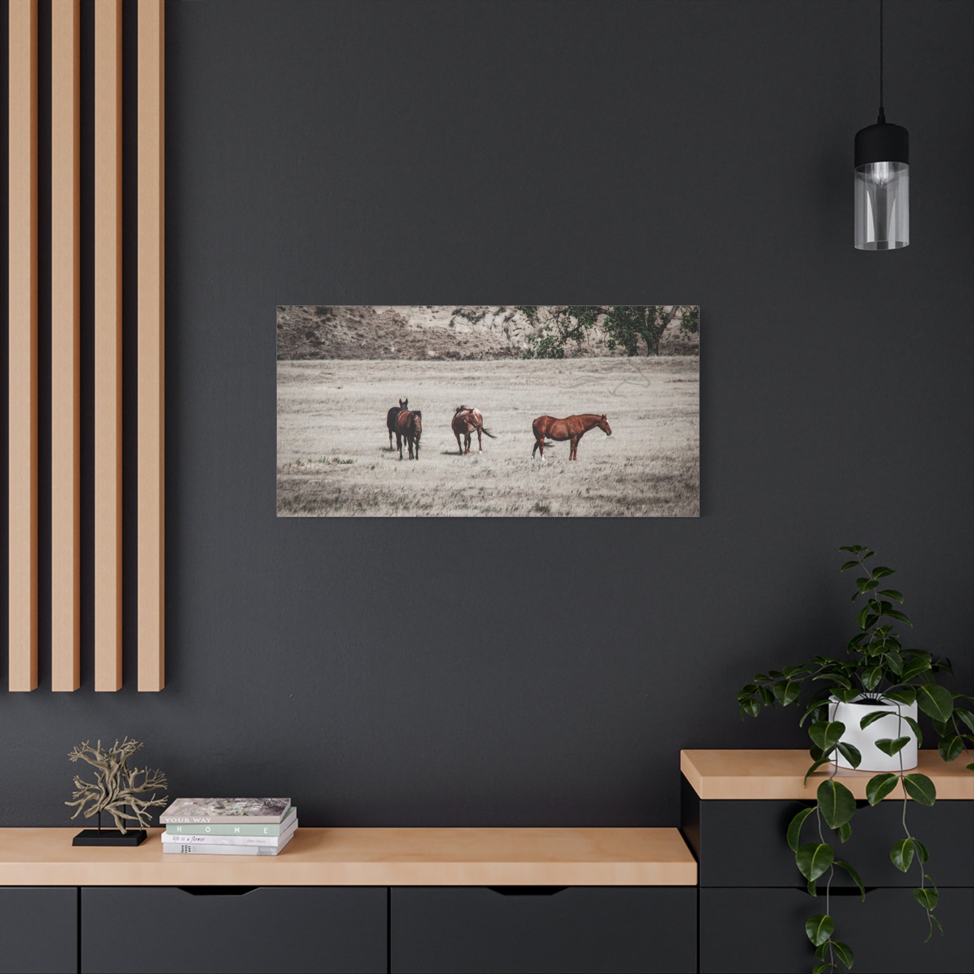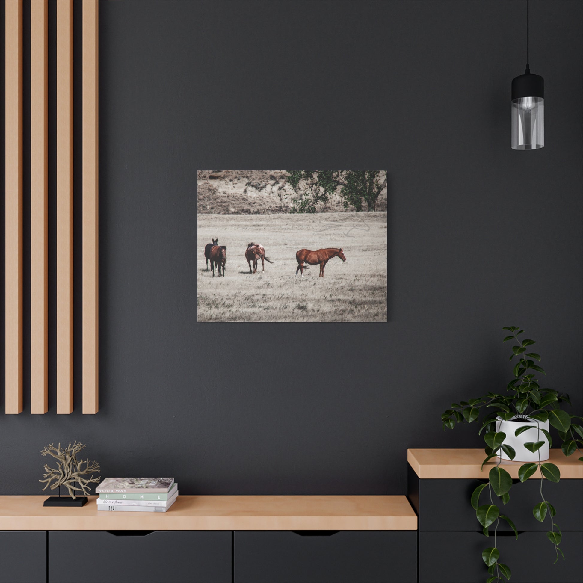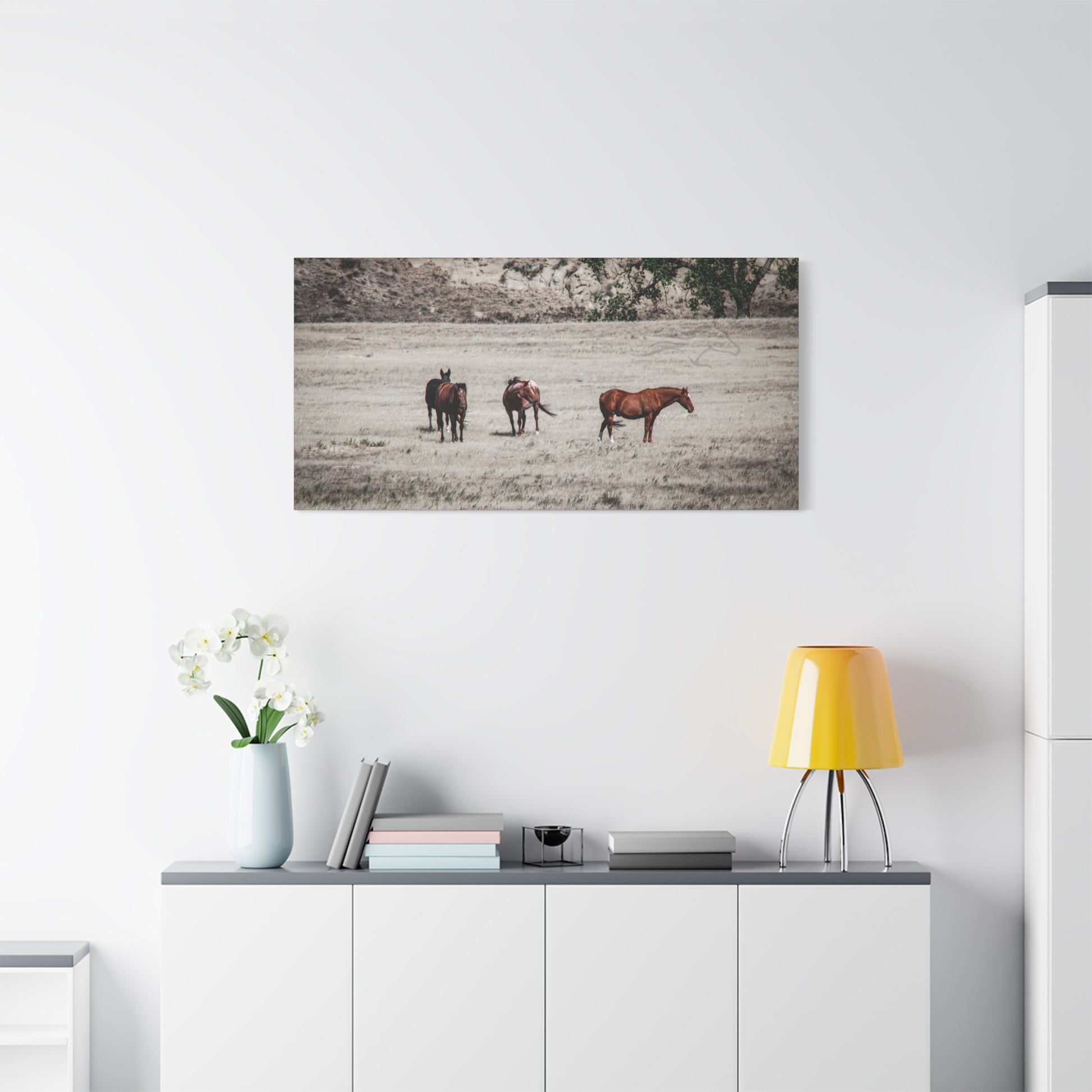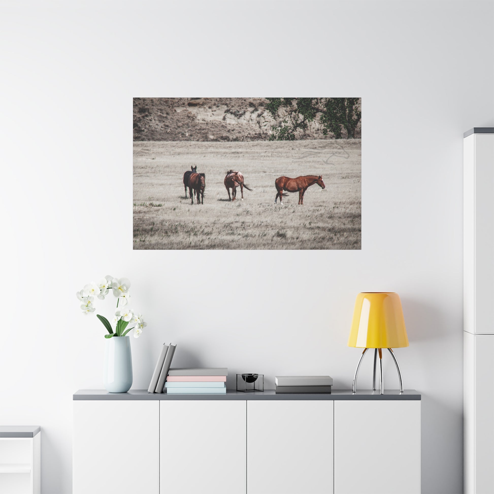 Elevate your living space with this stunning Matte Canvas. Perfect for animal lovers and nature enthusiasts, this artwork brings the serene beauty of horses in the wild right into your home. Its unique coating and high-quality inks ensure vibrant colors that create a captivating atmosphere, perfect for any room. Ideal for decorating your living room, bedroom, or office, it makes an excellent gift for birthdays, housewarmings, or anniversaries. Celebrate your love for nature and add a touch of elegance to your decor with this canvas piece.
