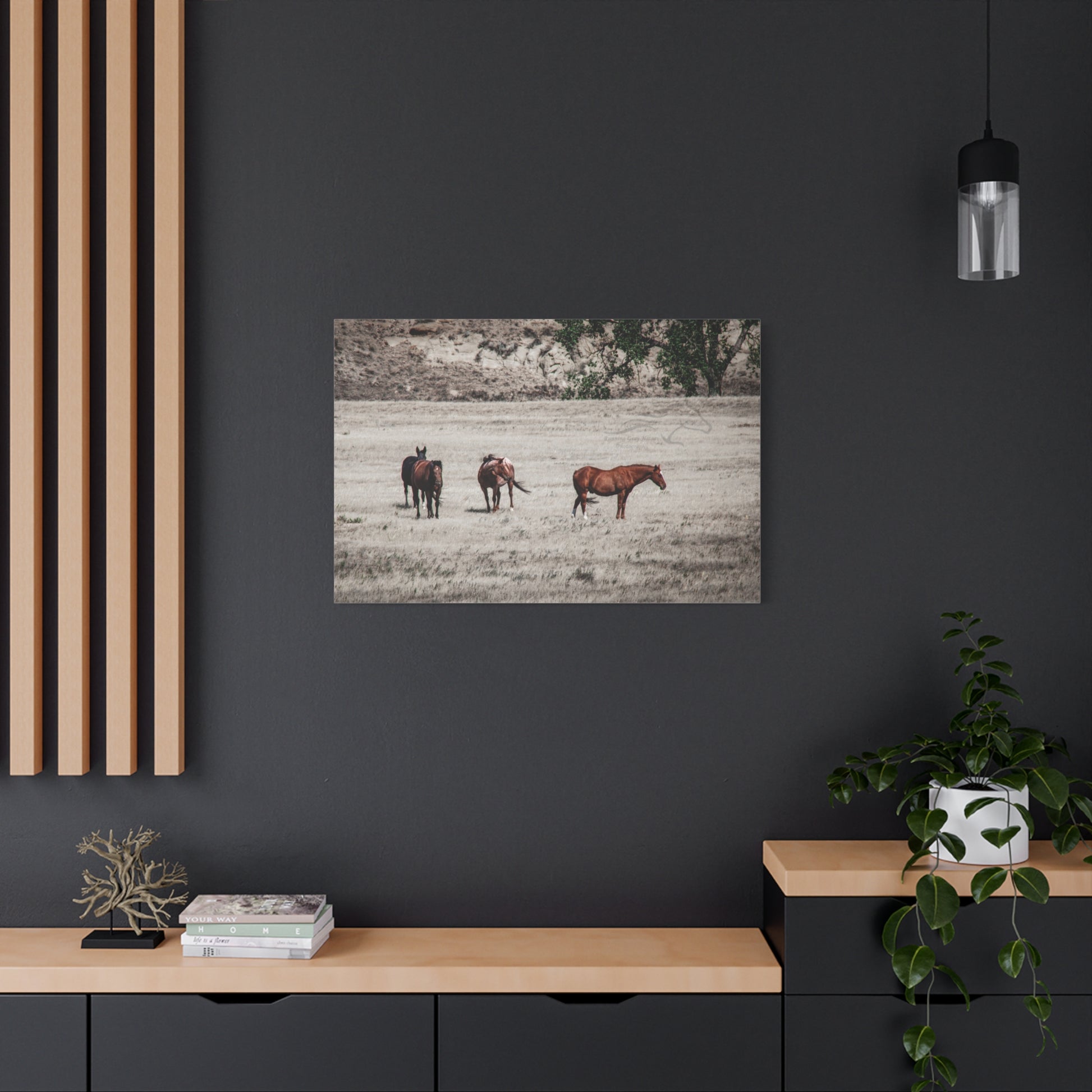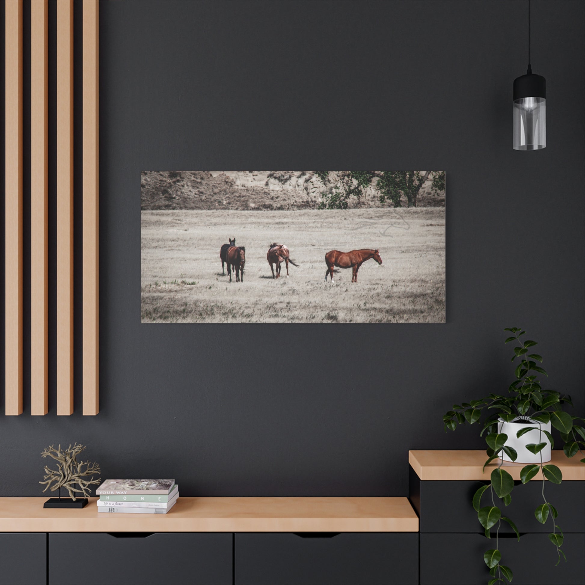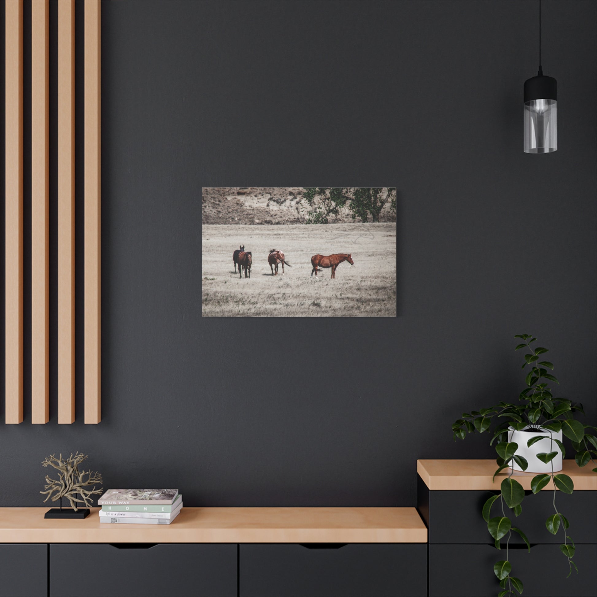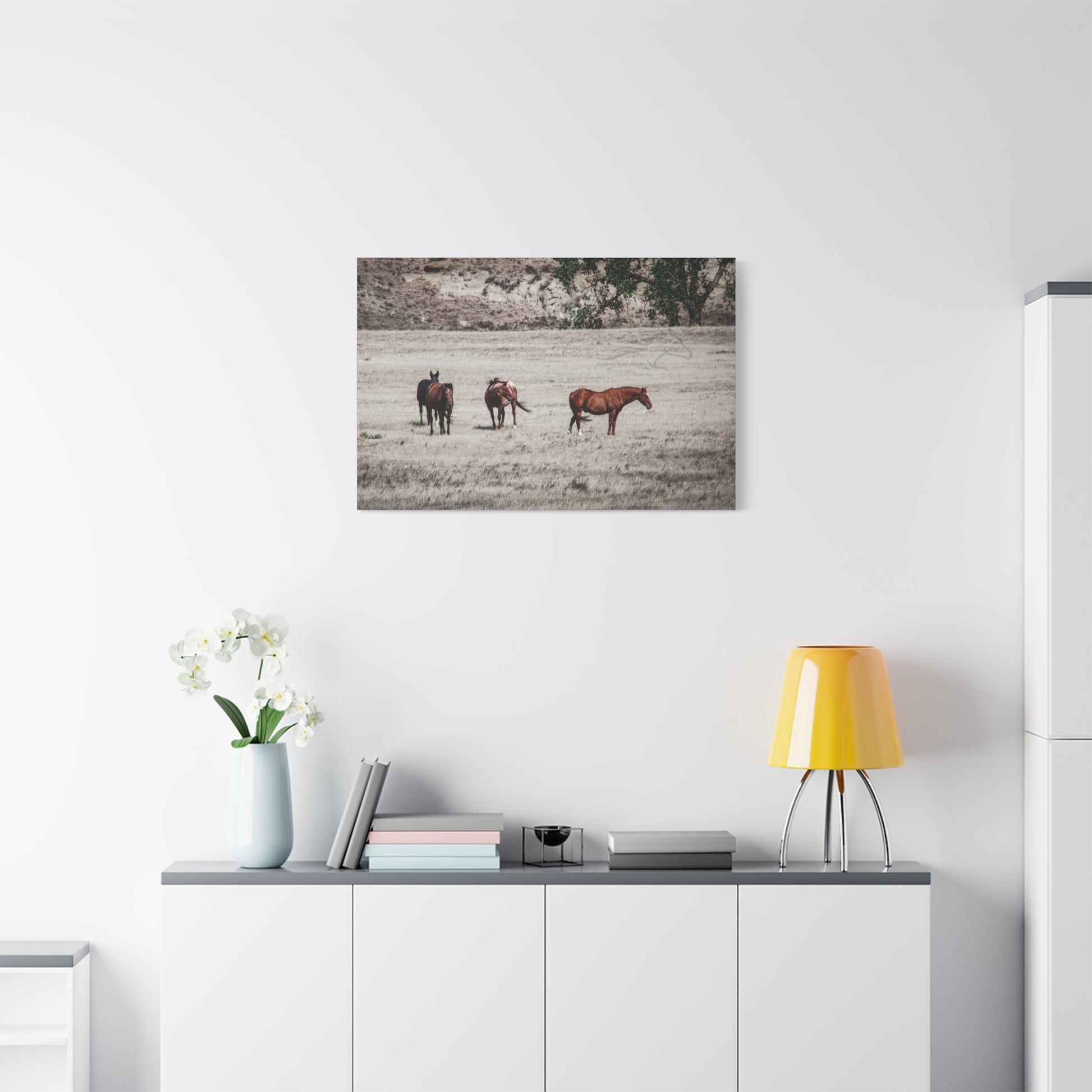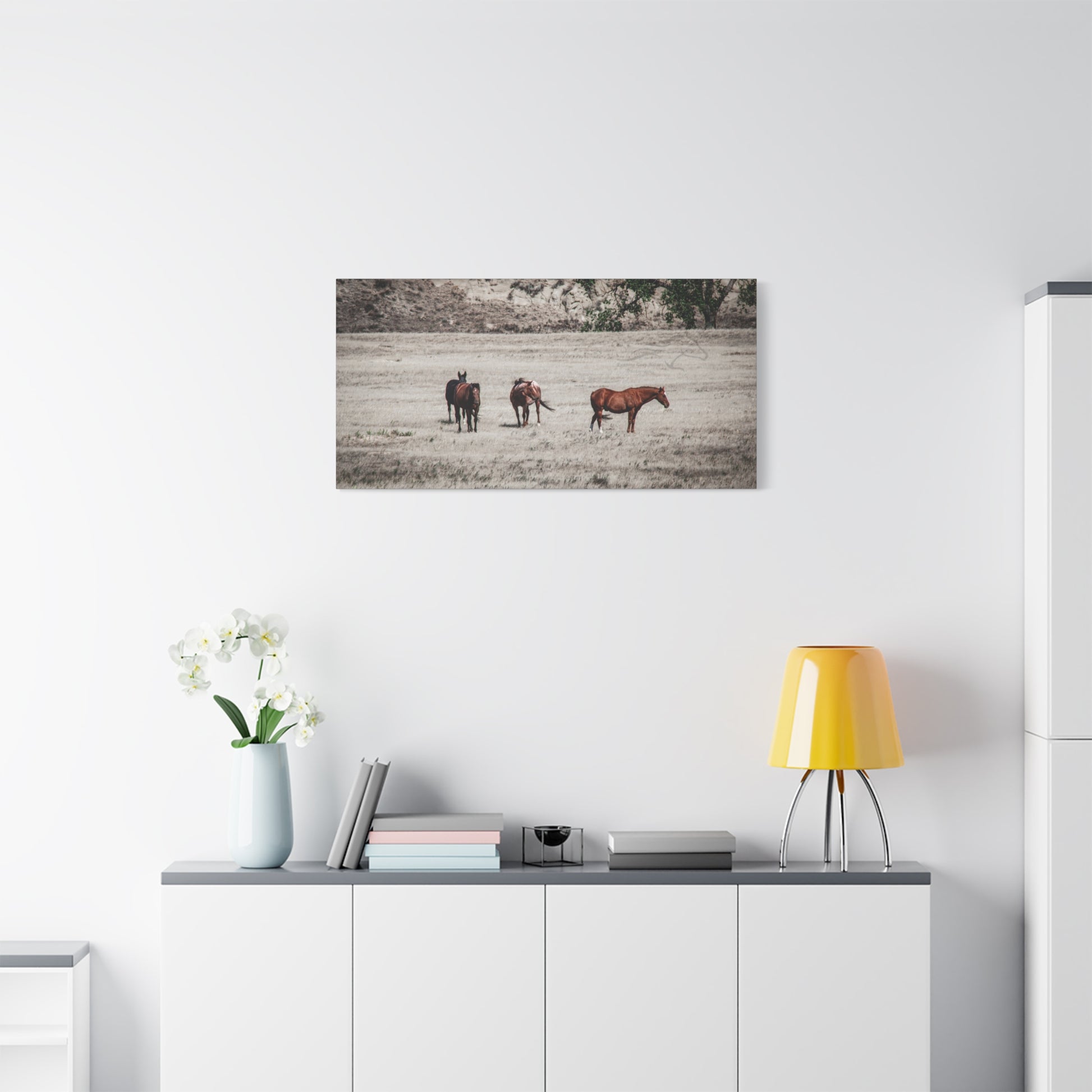 Elevate your living space with this stunning Matte Canvas. Perfect for animal lovers and nature enthusiasts, this artwork brings the serene beauty of horses in the wild right into your home. Its unique coating and high-quality inks ensure vibrant colors that create a captivating atmosphere, perfect for any room. Ideal for decorating your living room, bedroom, or office, it makes an excellent gift for birthdays, housewarmings, or anniversaries. Celebrate your love for nature and add a touch of elegance to your decor with this canvas piece.