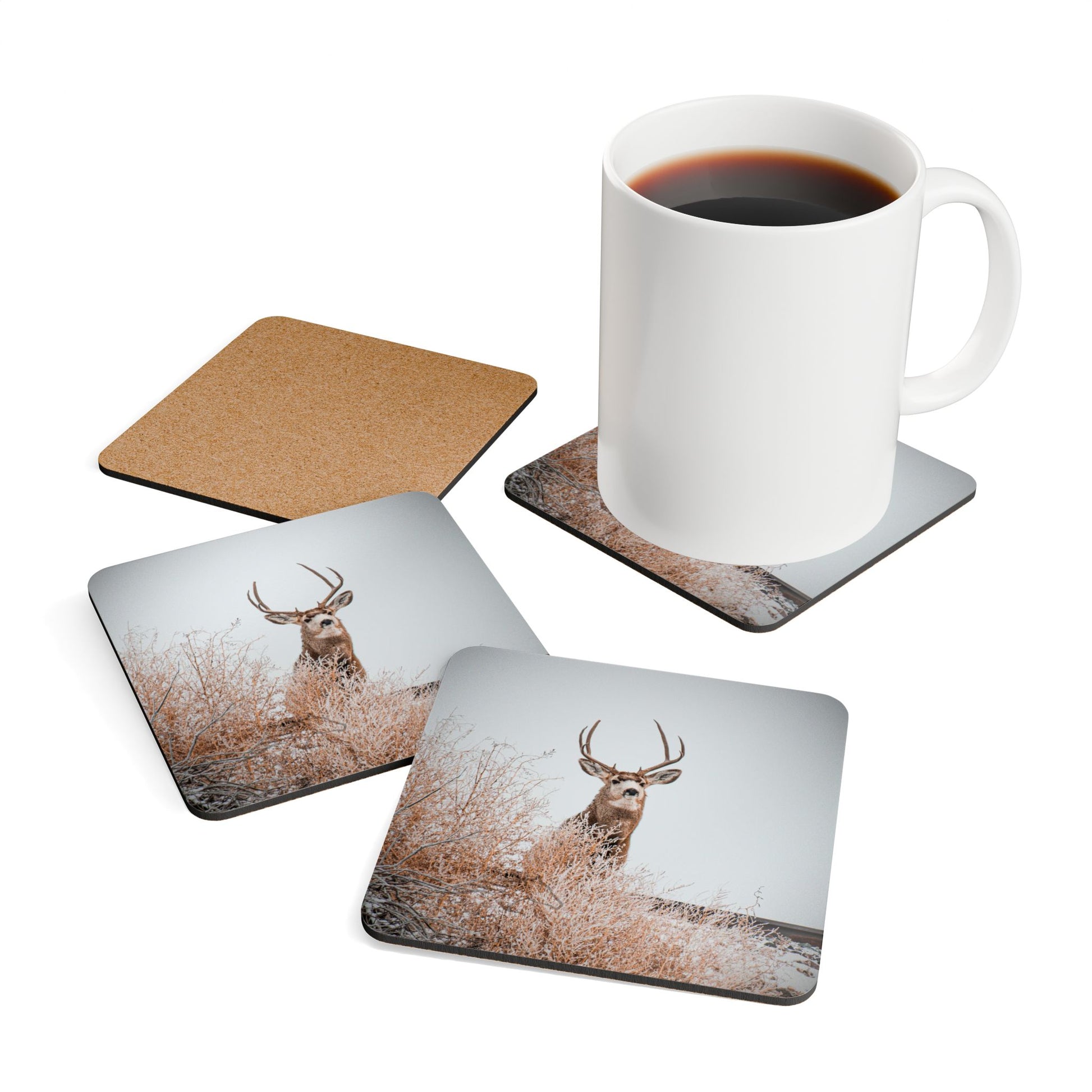 Rustic Deer Cork Coaster Set